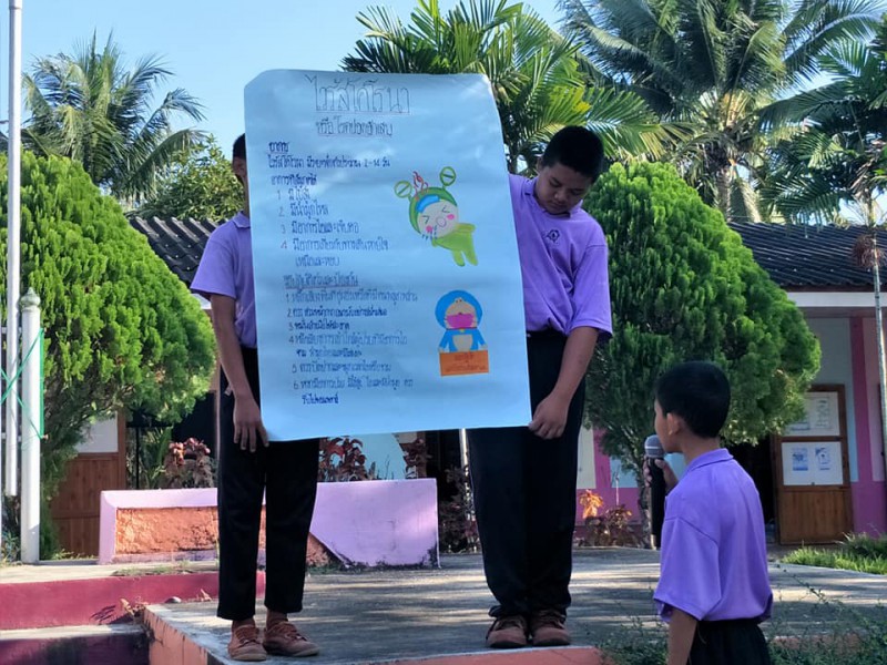 เช้าวันจันทร์ที่ 27 มกราคม 2563 ชั้นป.6 ตัวแทนคณะกรรมการนักเรียนให้ความรู้เรื่องเชื้อไวรัสโคโลน่าและวิธีป้องกันการติดเชื้อ