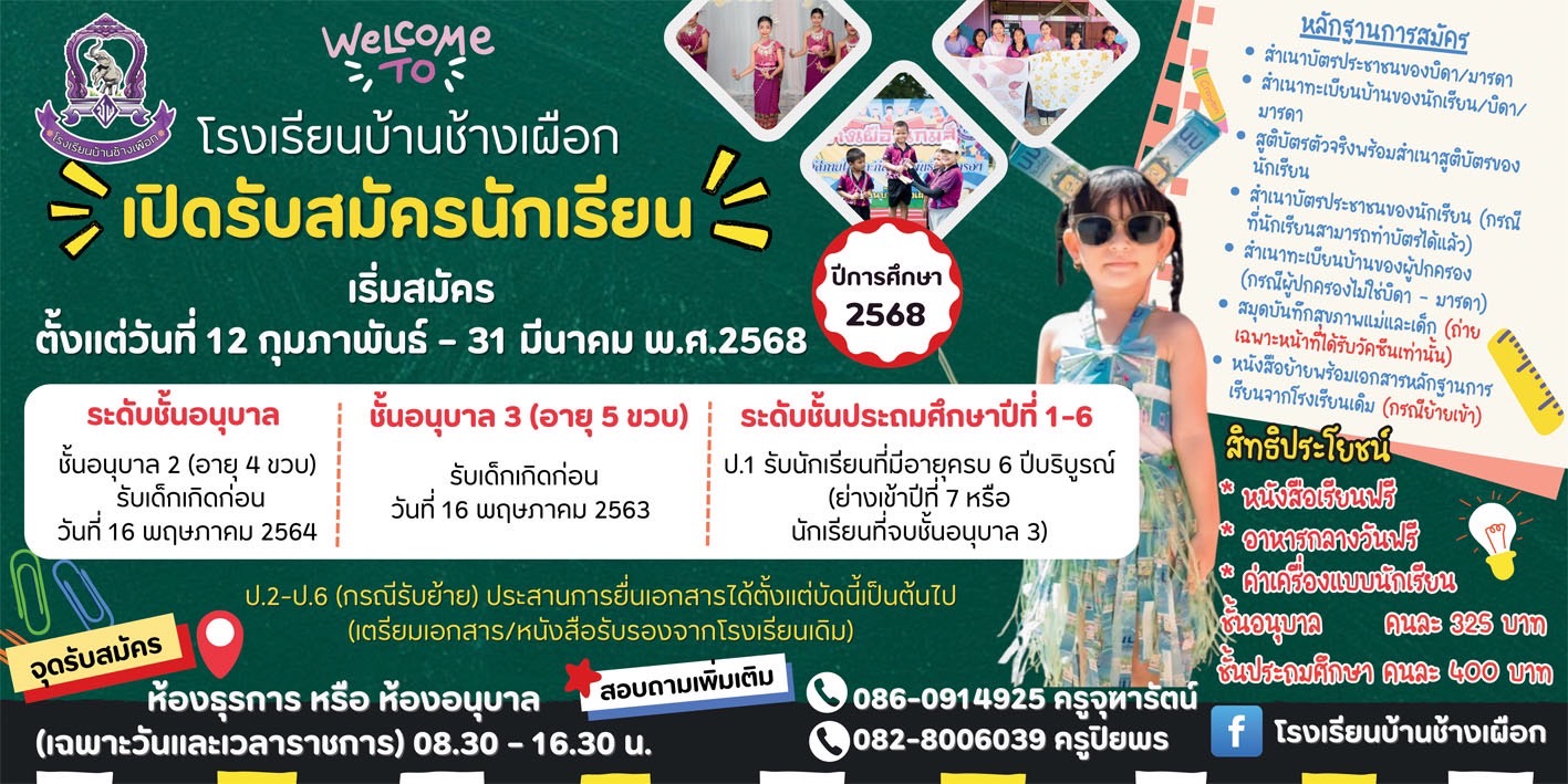 <<ยินดีต้อนรับเข้าสู่เวบไซต์โรงเรียนบ้านช้างเผือก>>